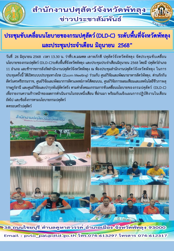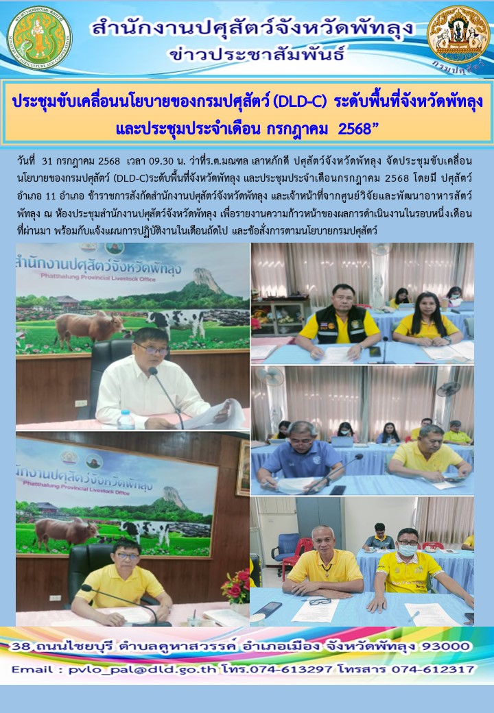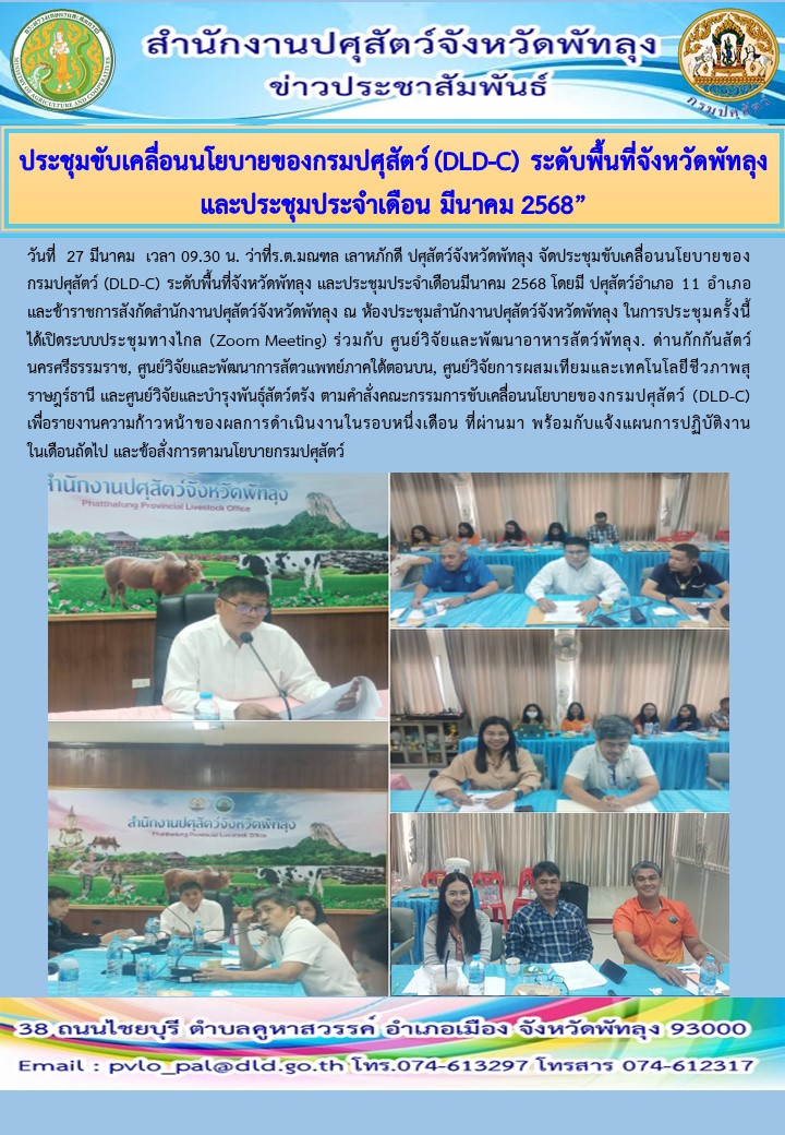 รายละเอียดตัวชี้วัดการขับเคลื่อนนโยบายของกรมปศุสัตว์ (DLD Co - ordinator:DLD-C) ประจำปีงบประมาณ พ.ศ.2568